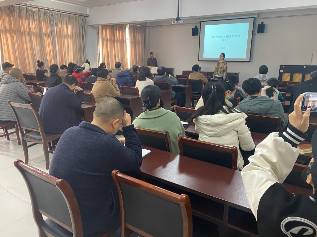 2021年11月15日下午,太阳集团网站8722邀请我校期刊编辑部主任武占江教授为师生做题为“传统艺术与中国人的精神家园”的专题讲座,讲座由太阳集团网站8722院长聂书法主持,太阳集团网站8722全体教师和部分研究生参会。